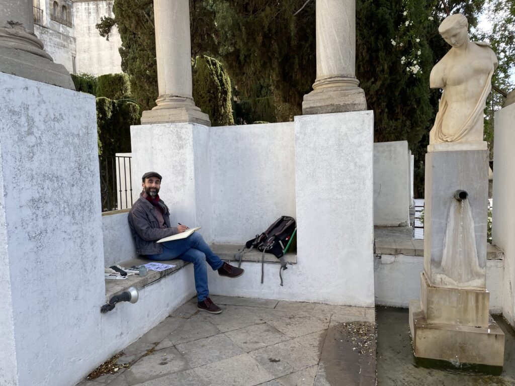 El pasado sábado 5 de abril recibimos la visita de 7 artistas en el jardín de la Fundación. Ellos fueron los promotores de esta visita artística. Ya nos contaron que habitualmente quedan para ir en grupo a trabajar al aire libre por diversos emplazamientos de la ciudad. Para nosotros fue un placer poder recibirlos.