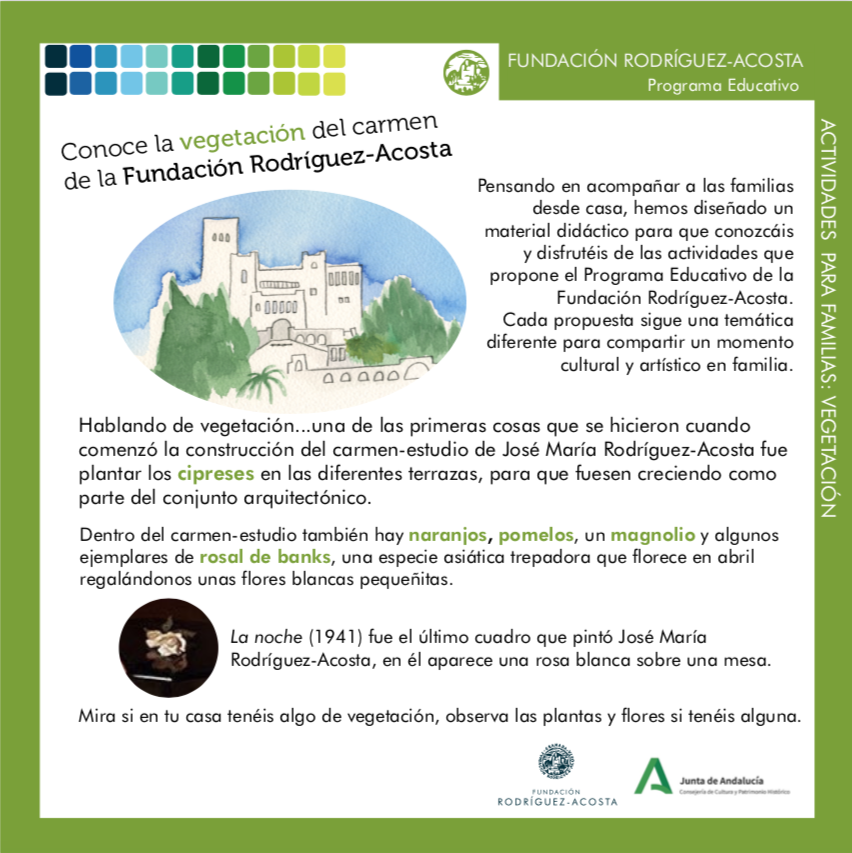 Hoy nos traen las características de la vegetación del jardín en sus fichas Actividades para conocer la vegetación del carmen FR-A y nos invitan a dibujar, fijándonos en la naturaleza más cercana.