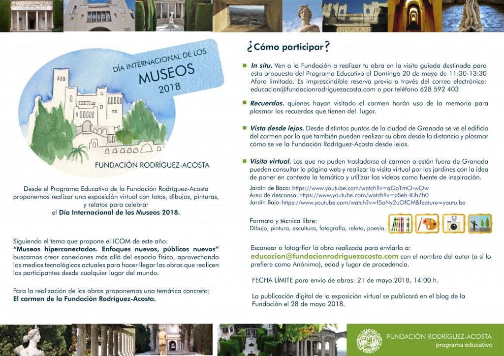 Para los que no puedan asistir, se da la opción de participar, mandando la foto de su obra al mail: educacion@fundacionrodriguezacosta.com Fotos de paisaje, fotos de los dibujos, pinturas, etc. cuya temática sea la Fundación Rodríguez-Acosta.