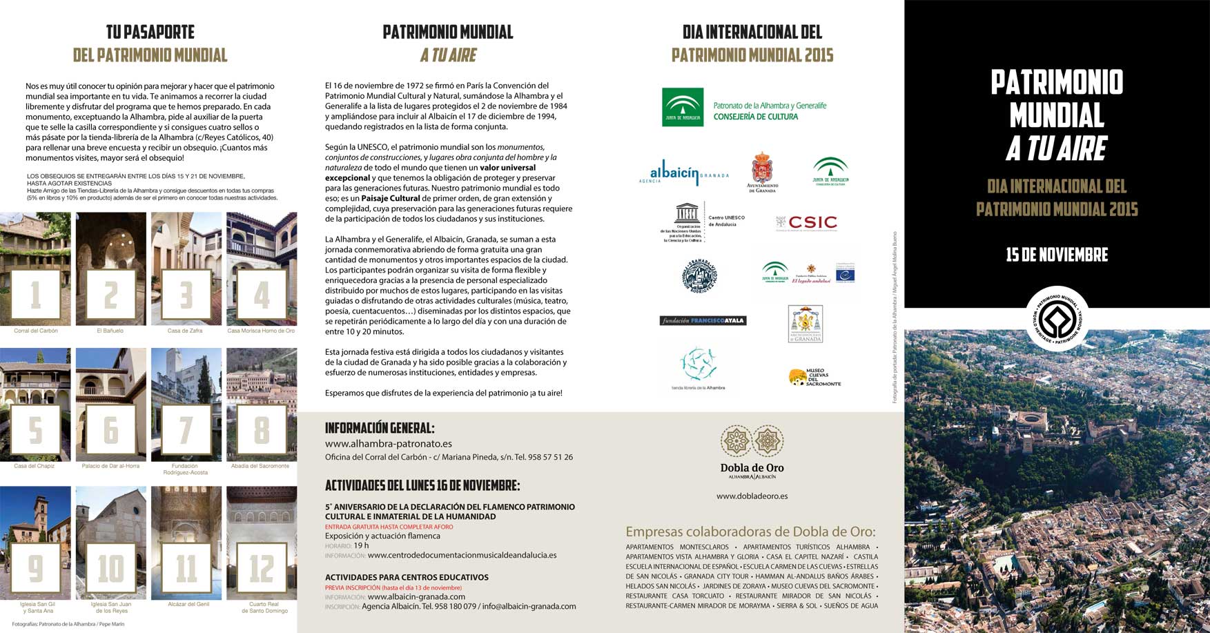Estas actividades culturales para el día del Patrimonio Mundial 2015 vienen de la mano del Patronato de la Alhambra y Generalife! En el siguiente enlace te puedes inscribir: ttp://bit.ly/1O5jA6 (ya están agotadas las plazas)