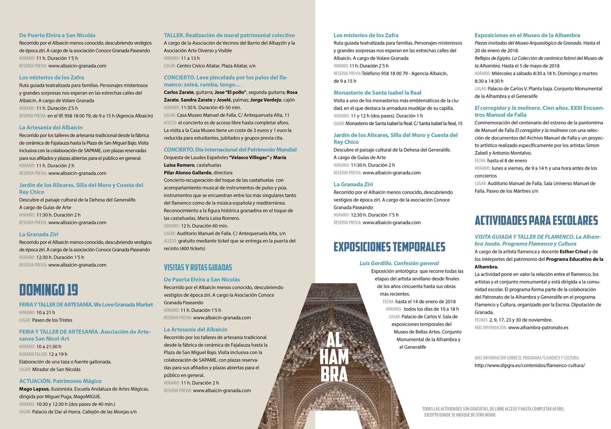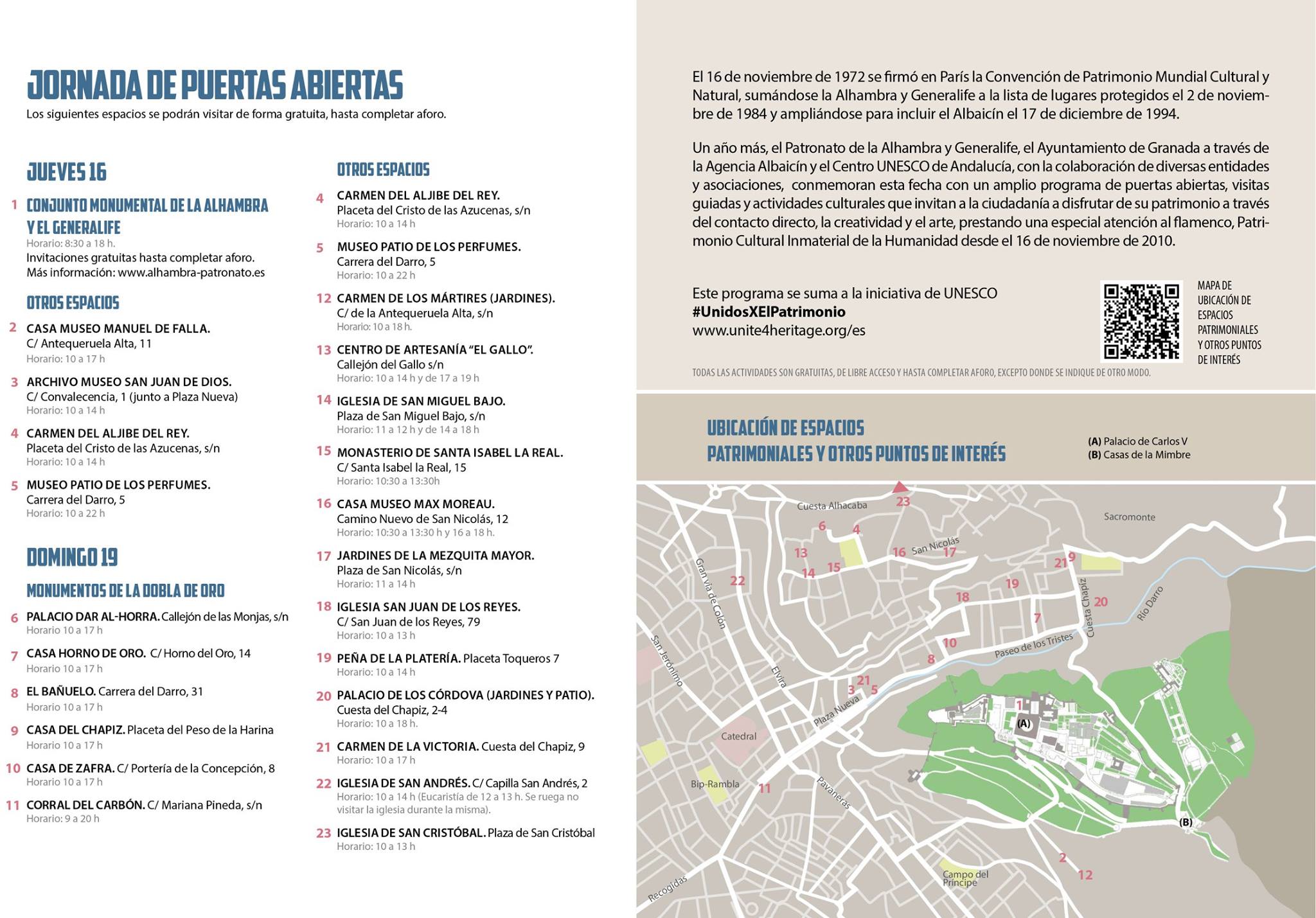 El próximo jueves 16 de noviembre, se celebra el Día del Patrimonio Mundial. Desde la colina de la Alhambra se ha articulado un completo programa de actividades en el que han participado las Instituciones y monumentos circundantes además de los del Albaicín.