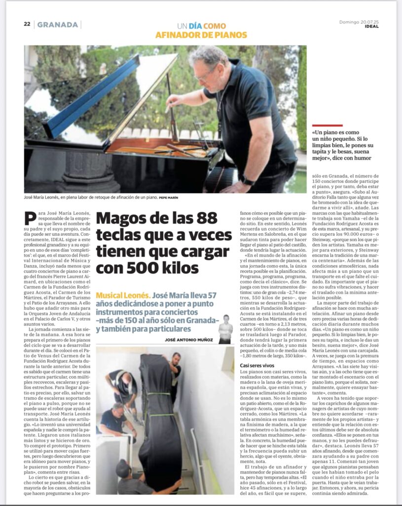 Hoy nos hacemos eco de este artículo de Ideal, de José Antonio Muñoz, en el que describe buena parte del trabajo extra que supuso, dentro del contexto del Festival, los conciertos de piano enlazados del día 7 de julio, que comenzaron en el Patio de Venus de la Fundación.