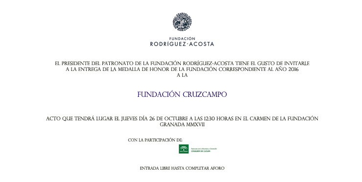 Esta Fundación ha tenido un papel fundamental en la cultura de Andalucía de estos últimos años; su patrocinio al Centro Pompidou en Málaga, o a los Encuentros Manuel de Falla, en Granada, son prueba de ello. Además su colaboración a la Fundación Rodríguez-Acosta, ha sido una constante en los últimos 15 años. NP Medalla Honor FRA Cruzcampo