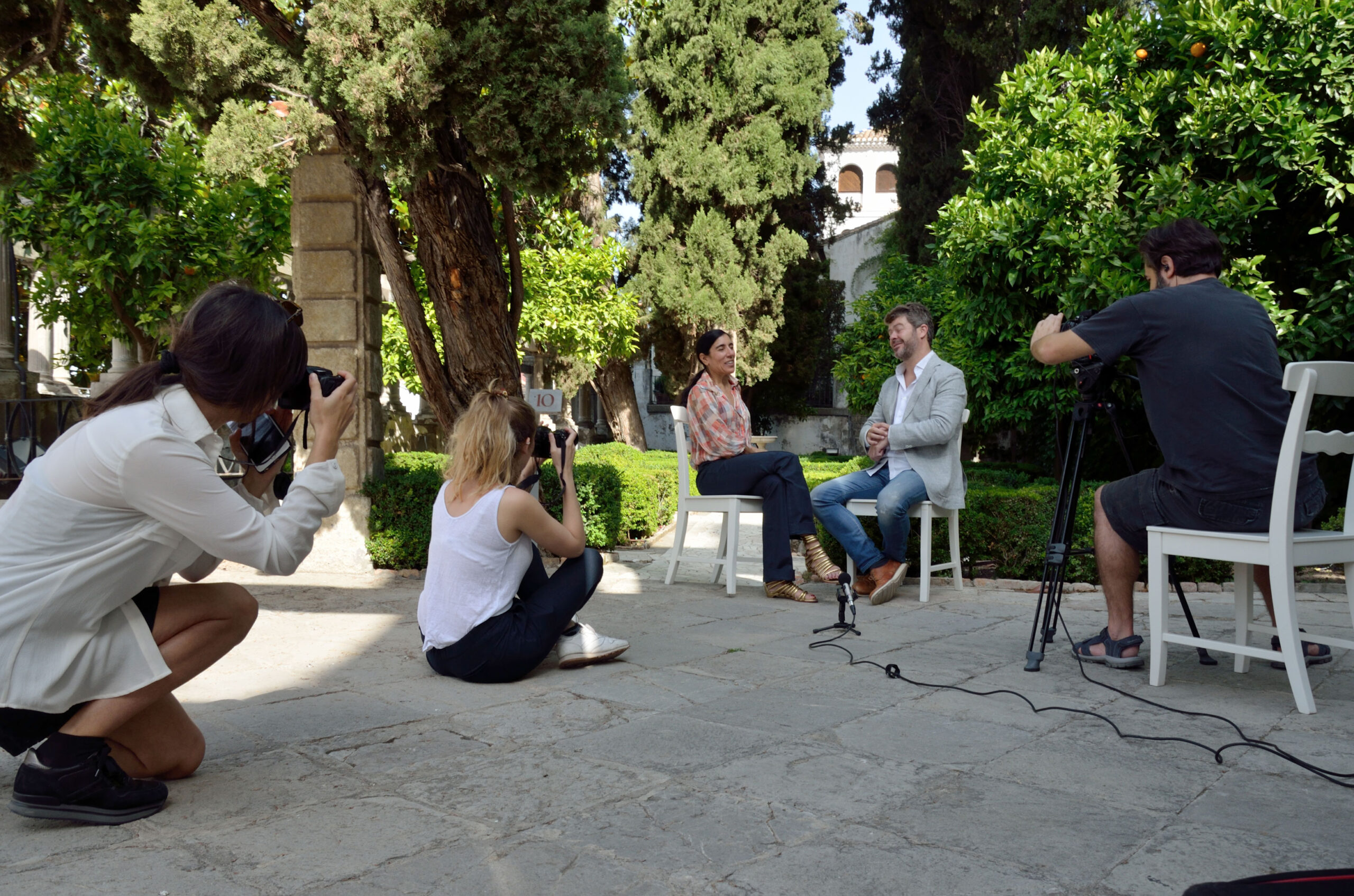 En la primera hora de la mañana se rodó la entrevista conjunta con ambos artistas, en los jardines bajos, por Oxymore Productions.