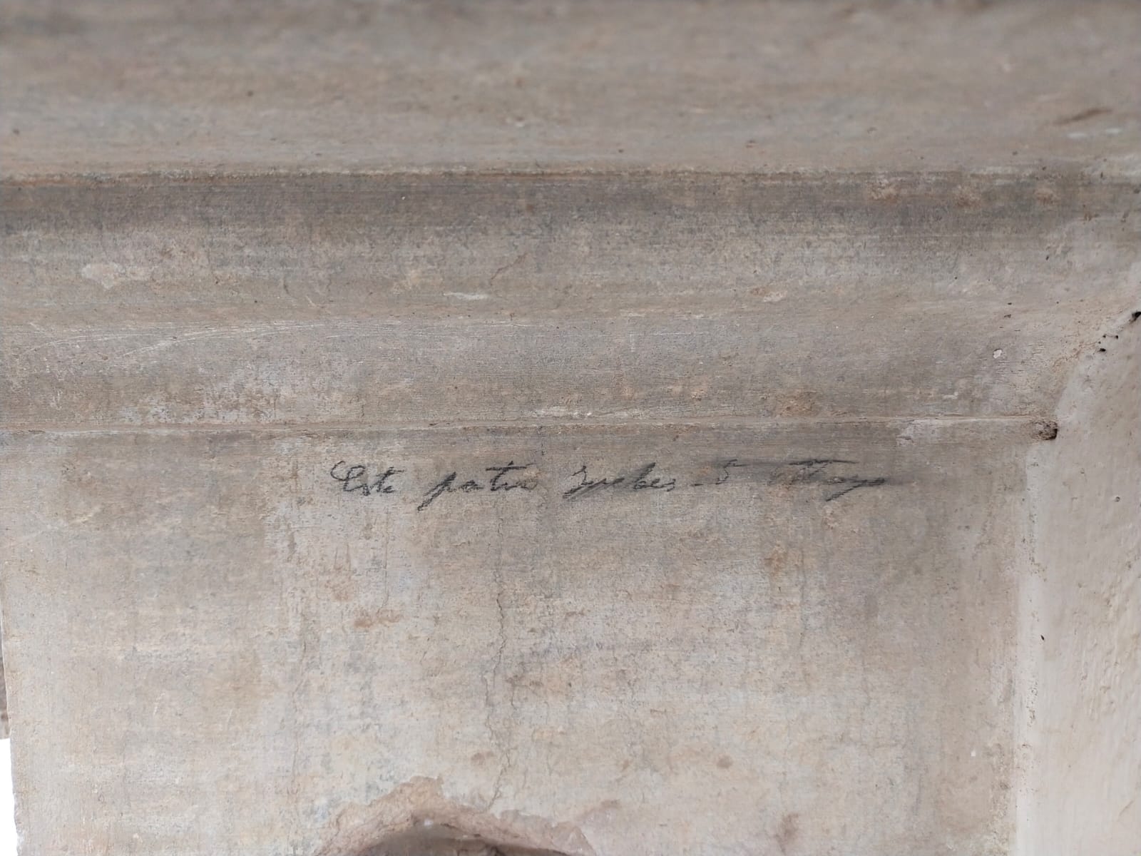 Esta mañana en una de las visitas previas a la próxima obra, encontramos una de las anotaciones a lápiz que se pueden encontrar en algunos ángulos escondidos, de la construcción, posiblemente realizadas por los obreros que llevaron a cabo las obras; pueden ser, cuentas (sumas), nombres o fechas, como en este caso.