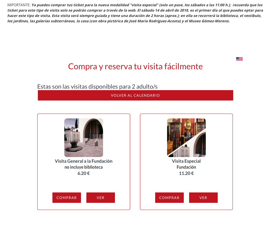 Y finalmente, podréis ver con claridad las dos opciones del sábado, en la que se ve la Visita Especial queda claramente especificada: