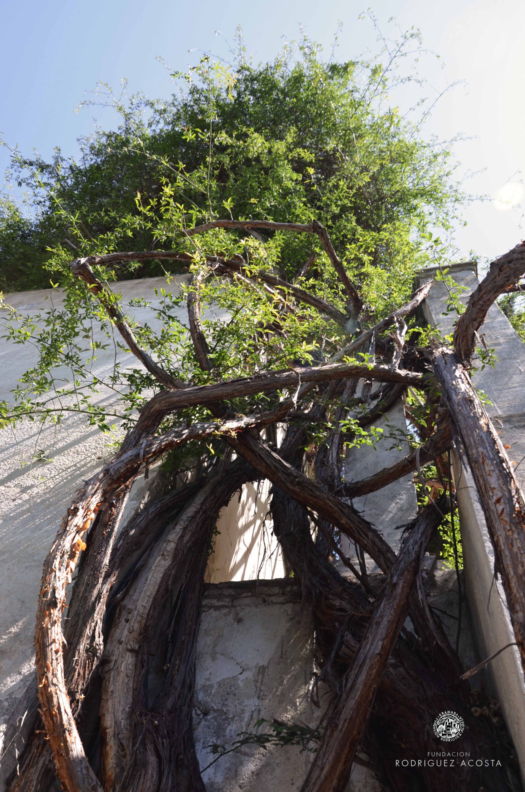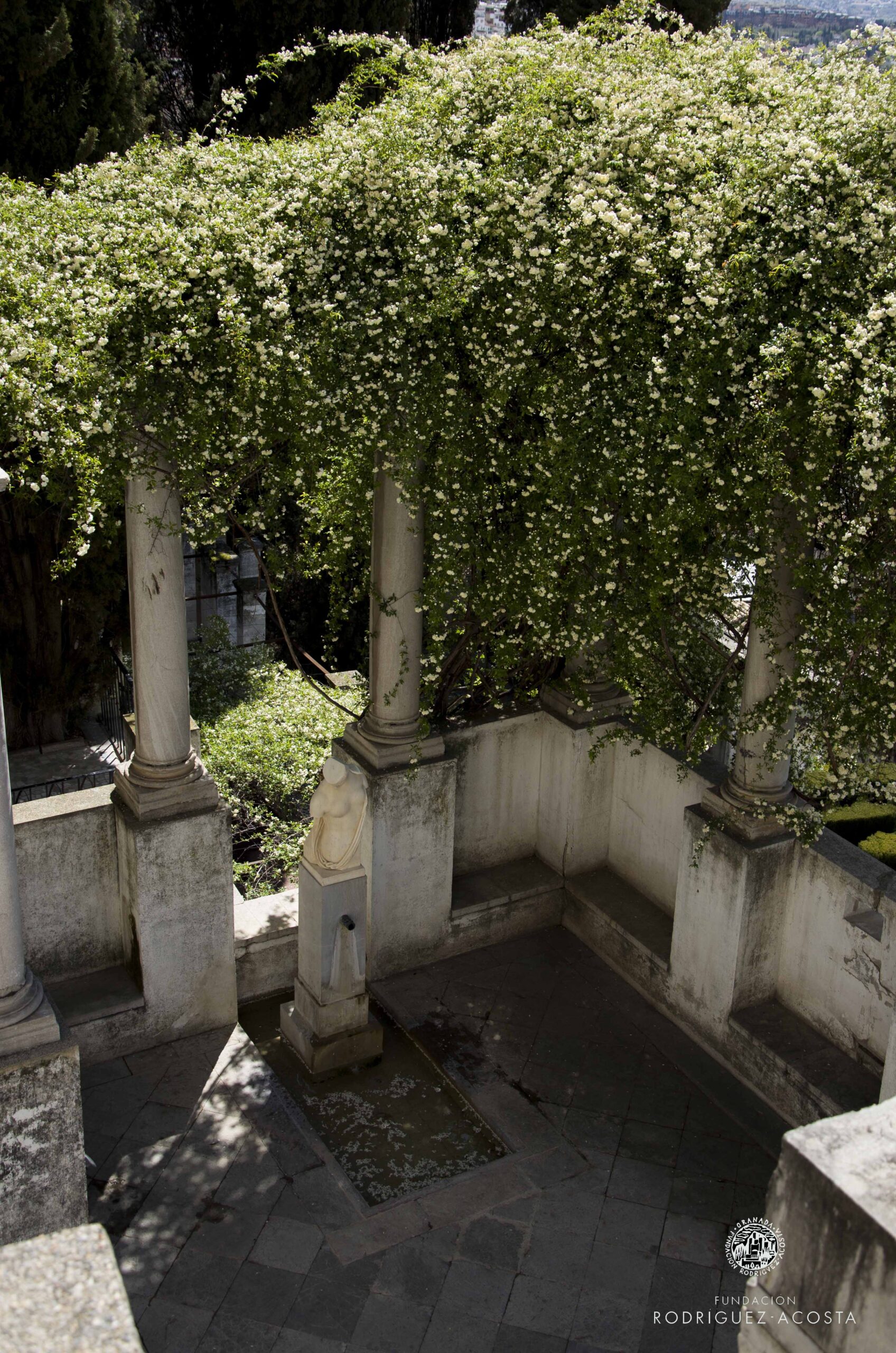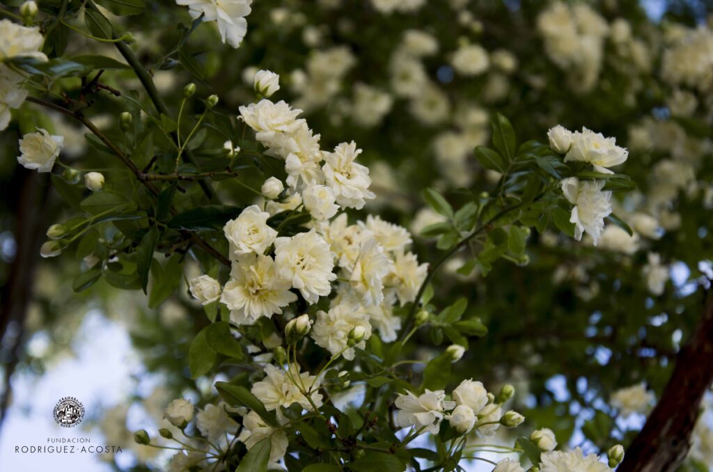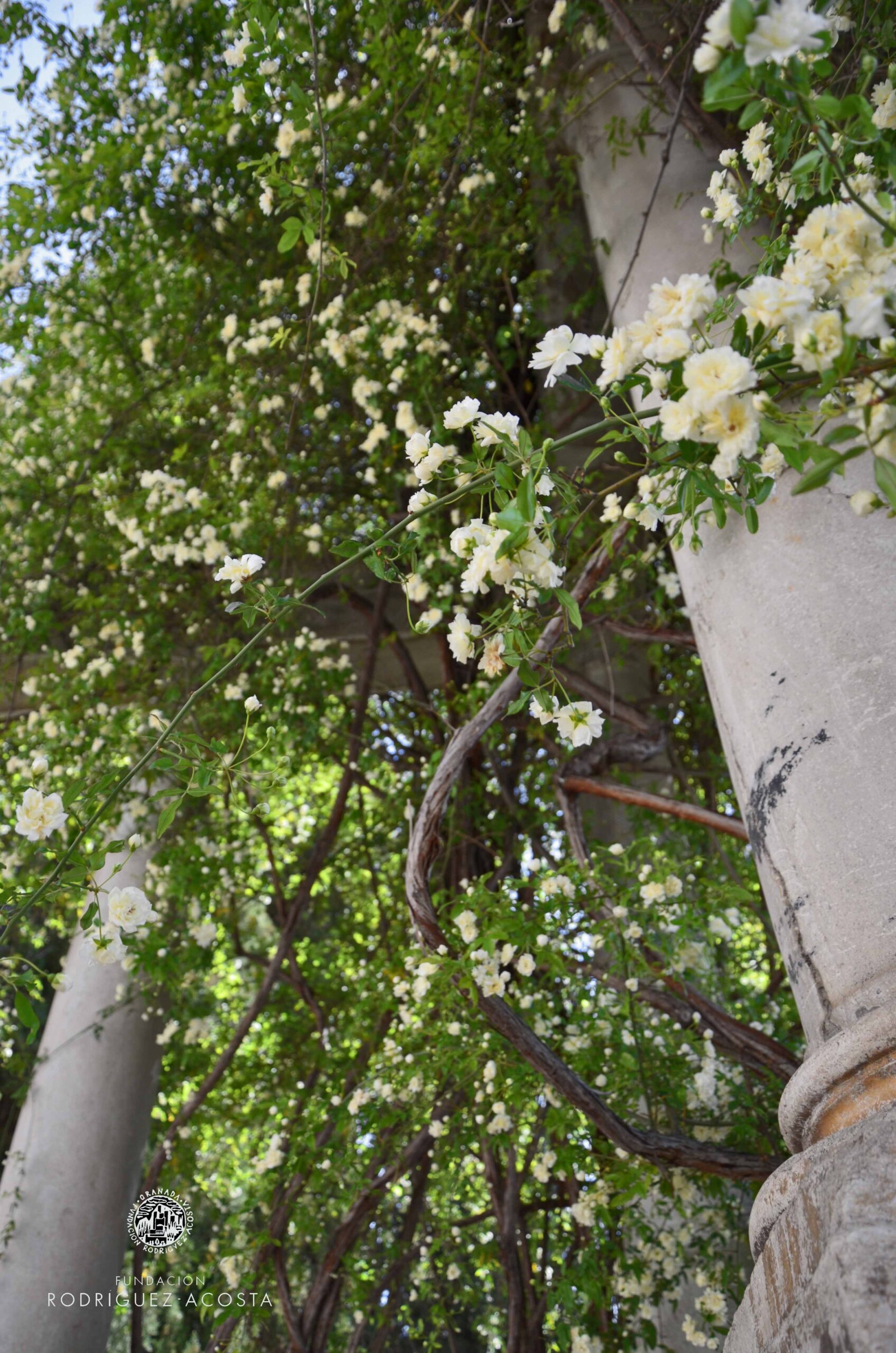 El rosal de Banks (Rosa banksiae) crece en varios puntos del jardín del carmen de la Fundación aprovechando los espacios arquitectónicos presentes. Dicha especie asiática tiene una gran capacidad trepadora que es aprovechada para cubrir algunas de las estructuras construidas.