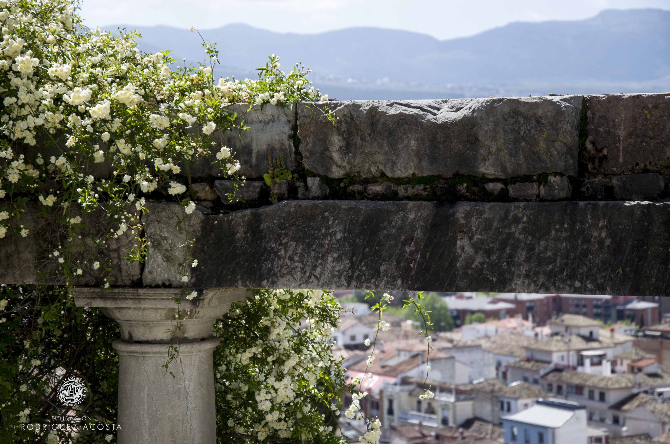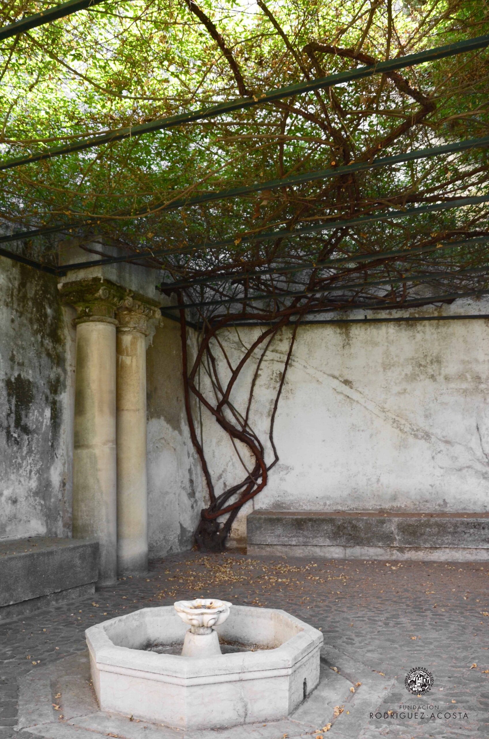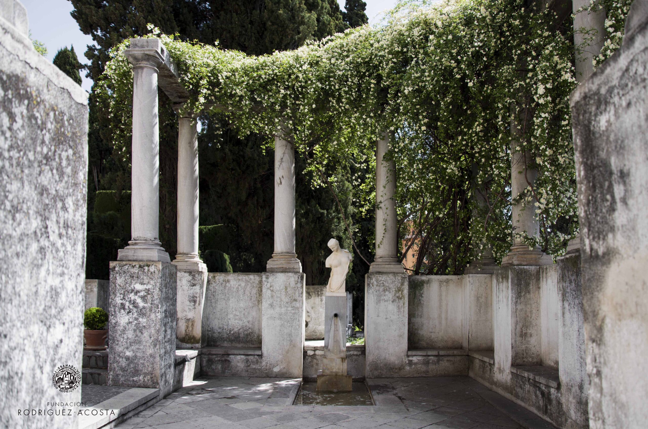El rosal de Banks (Rosa banksiae) crece en varios puntos del jardín del carmen de la Fundación aprovechando los espacios arquitectónicos presentes. Dicha especie asiática tiene una gran capacidad trepadora que es aprovechada para cubrir algunas de las estructuras construidas.