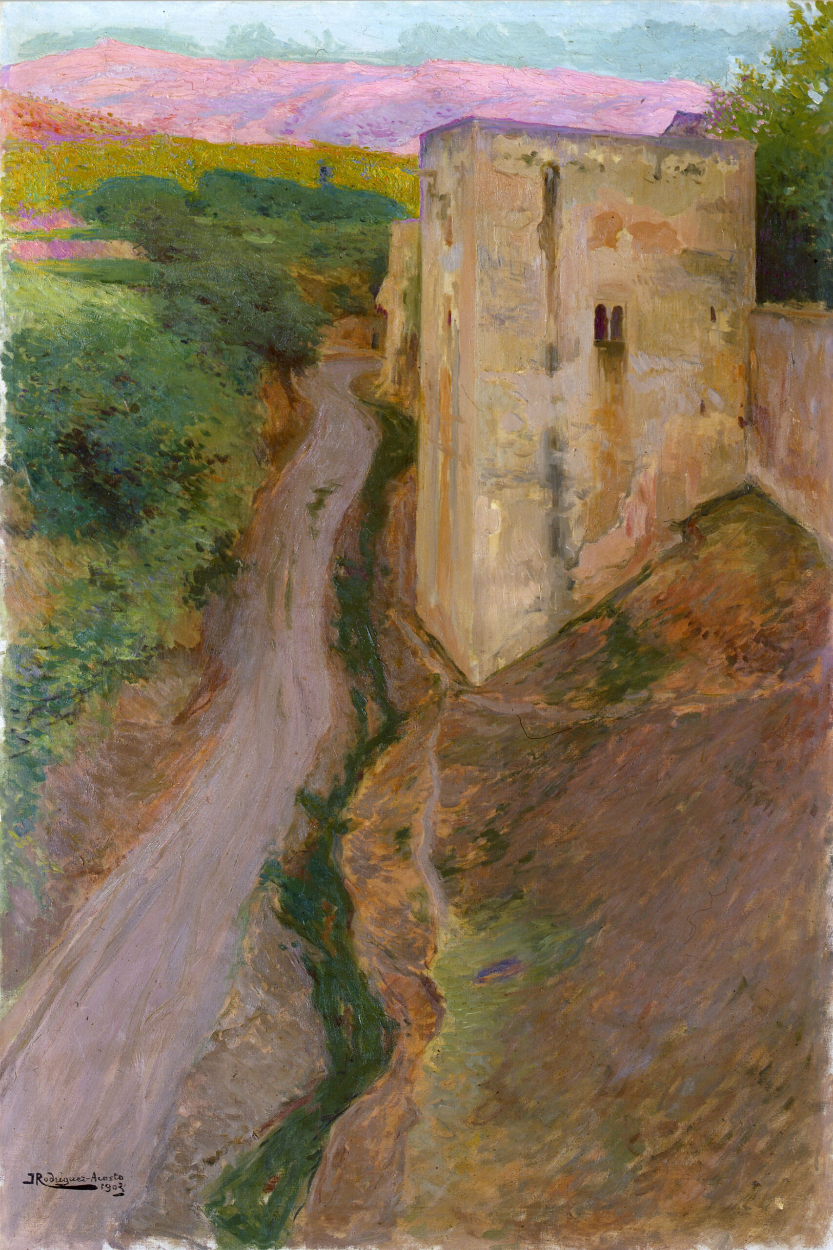 En ella podremos ver una obra de José María Rodríguez-Acosta que está expuesta habitualmente en el Vestíbulo del carmen de la Fundación. Se trata de «Muros de la Alhambra» (1903), que siempre nos fascina por sus luces del atardecer sobre la nieve de Sierra Nevada.