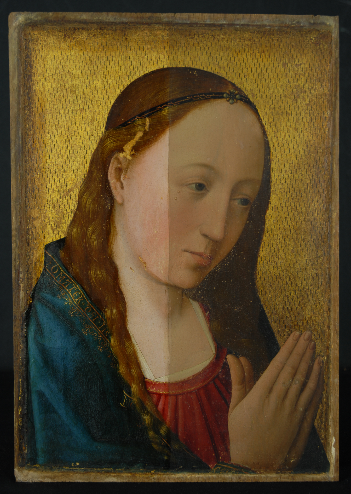 Desde el pasado 29 de marzo se puede ver una pieza inédita de la colección Gómez-Moreno expuesta en el Museo: la que llamamos «Virgen orante», un óleo sobre tabla de la segunda mitad del siglo XV que viene a incrementar el número de estas obras que se exponen en nuestro museo, convirtiéndolo quizás, en el segundo de Granada que contenga piezas de ese señalado periodo del arte flamenco.