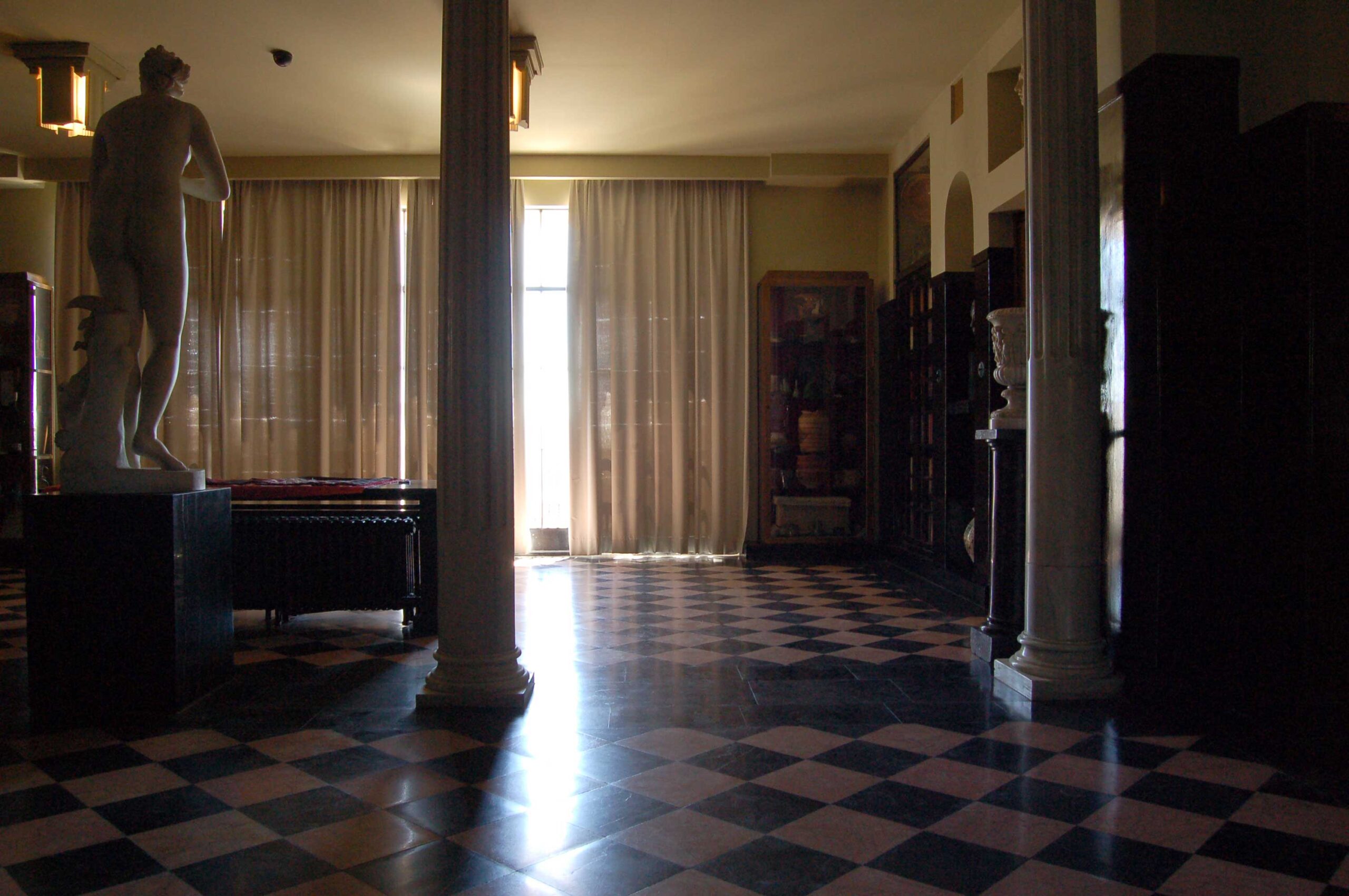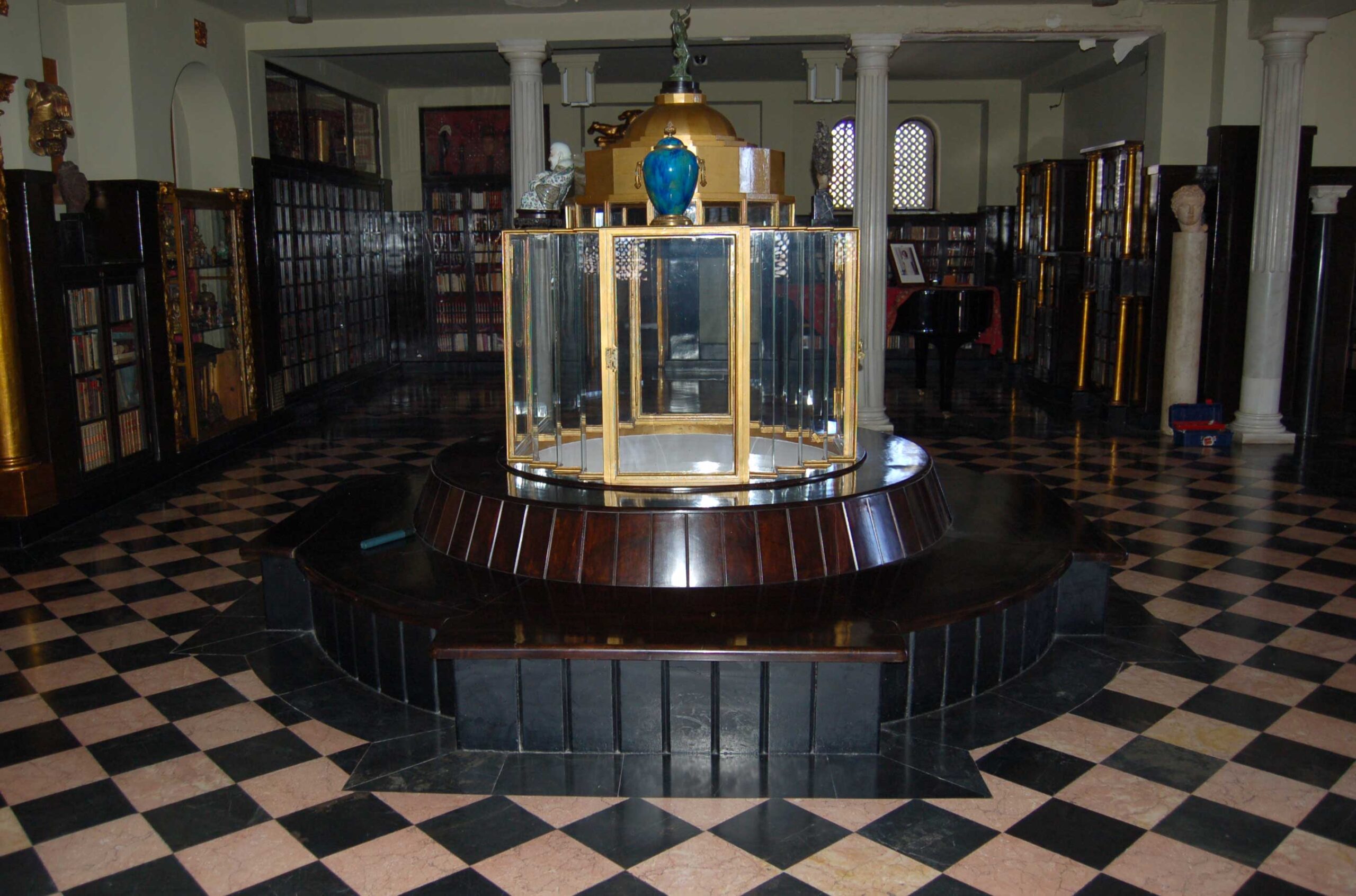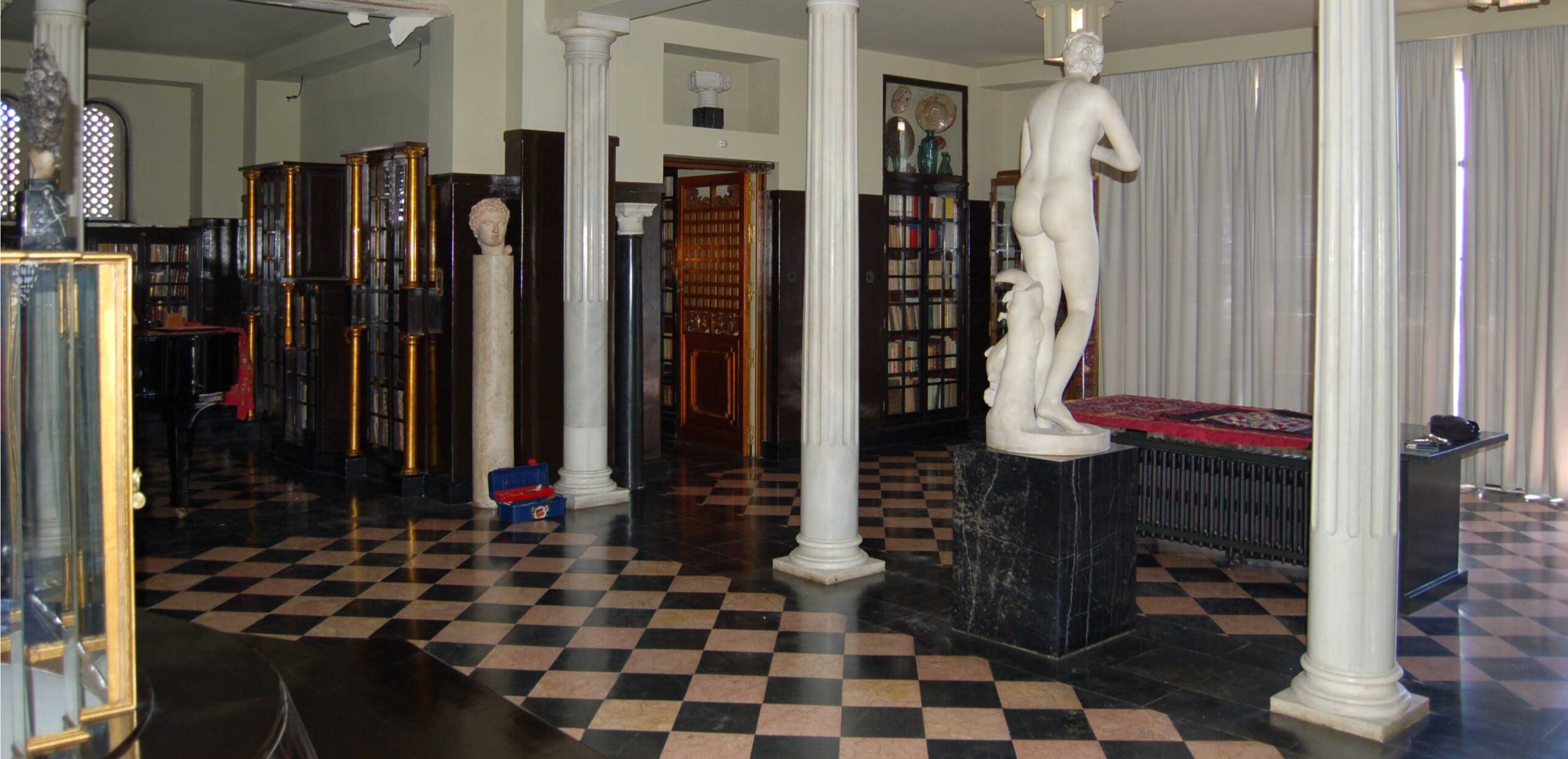 Desde la semana pasada estamos trabajando de lleno en el desmontaje de la Biblioteca. Después de largas esperas le ha llegado el turno y en breve se acometerá el delicado trabajo de pintar toda la sala. Para añadir dificultad, no todos los elementos podrán ser desmontados, así que dedicaremos aún varios días a la protección de las columnas y esculturas. Al menos los muebles, los objetos ligeros y los tejidos han sido ya desalojados y guardados.