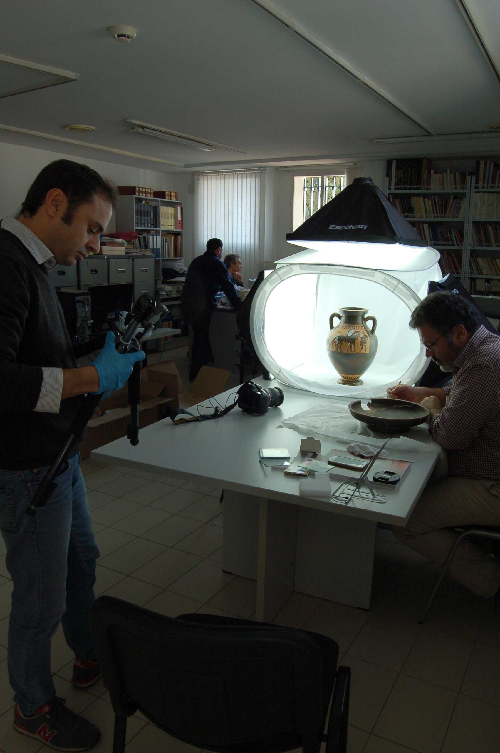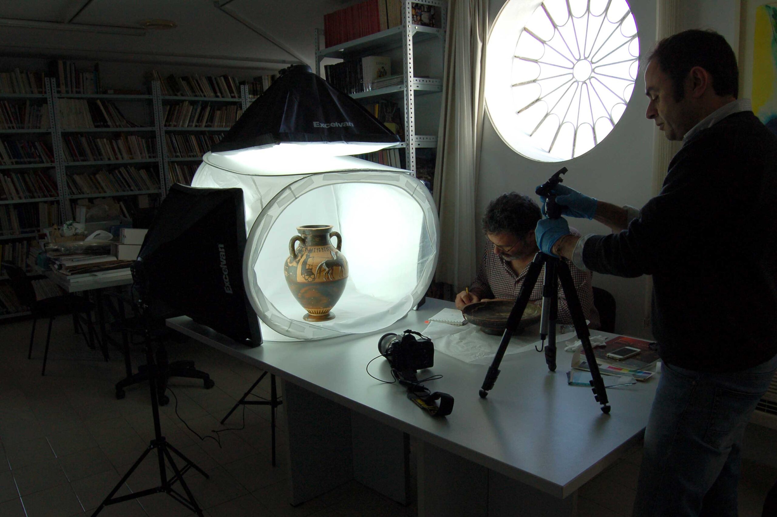 Despedimos el año trabajando en uno de los campos que más nos gusta, la investigación. Ayer contamos con la presencia de grandes profesionales que sumaron esfuerzos para ultimar los detalles necesarios que nos harán concluir pronto con esta publicación digital. Javier de Pablos Ramos como «Arte y Proyecto» y el profesor Andrés María Adroher Auroux, revisaron algunas piezas de cerámica griega, bajo la coordinación de Javier Moya Morales. Una de nuestras piezas estrella dentro de la sección de arqueología es este ánfora ática con gacela en una de sus caras, de la que tenemos algunas fotografías en nuestro archivo tomadas en casa de los Gómez-Moreno en Madrid.