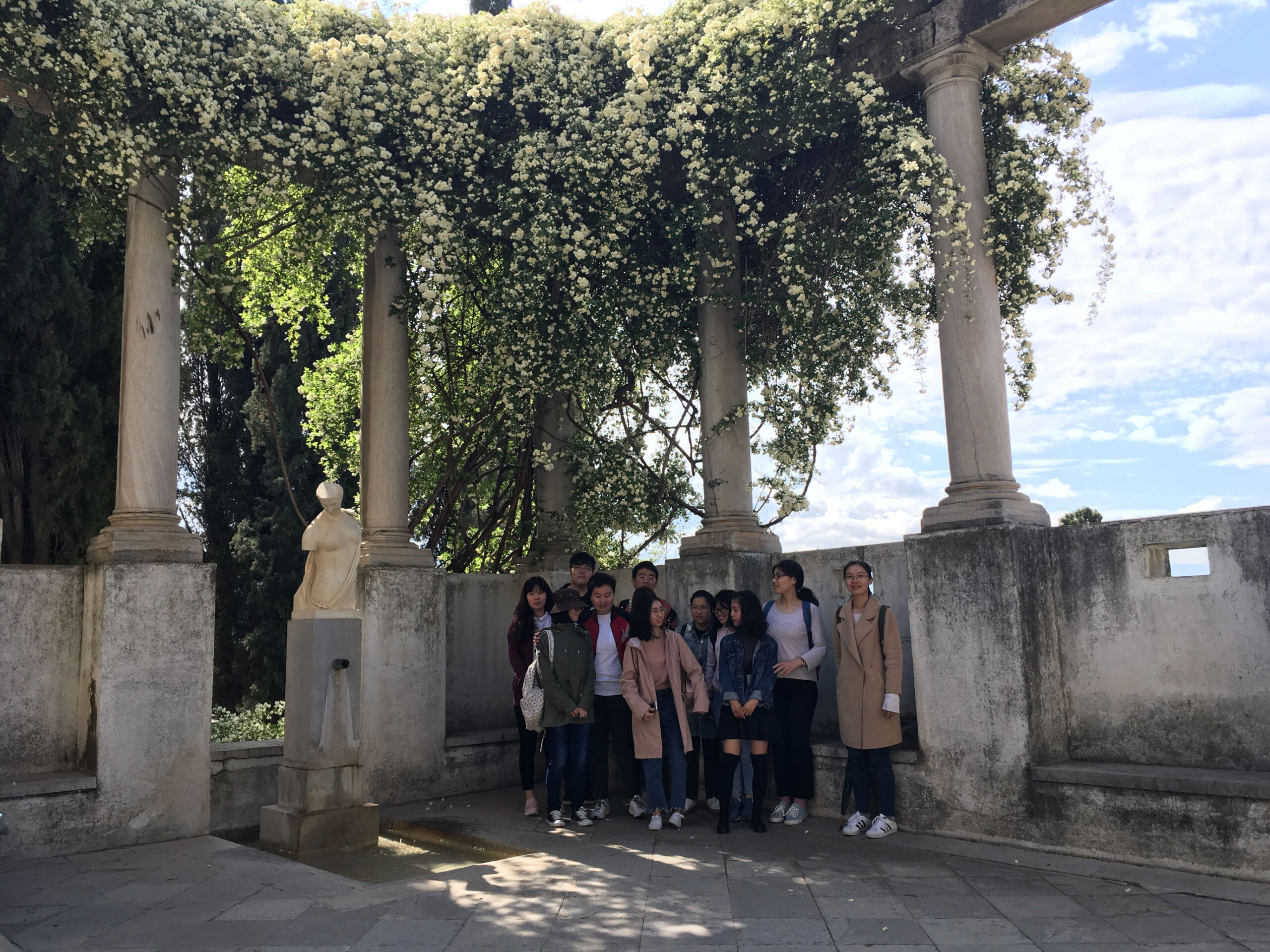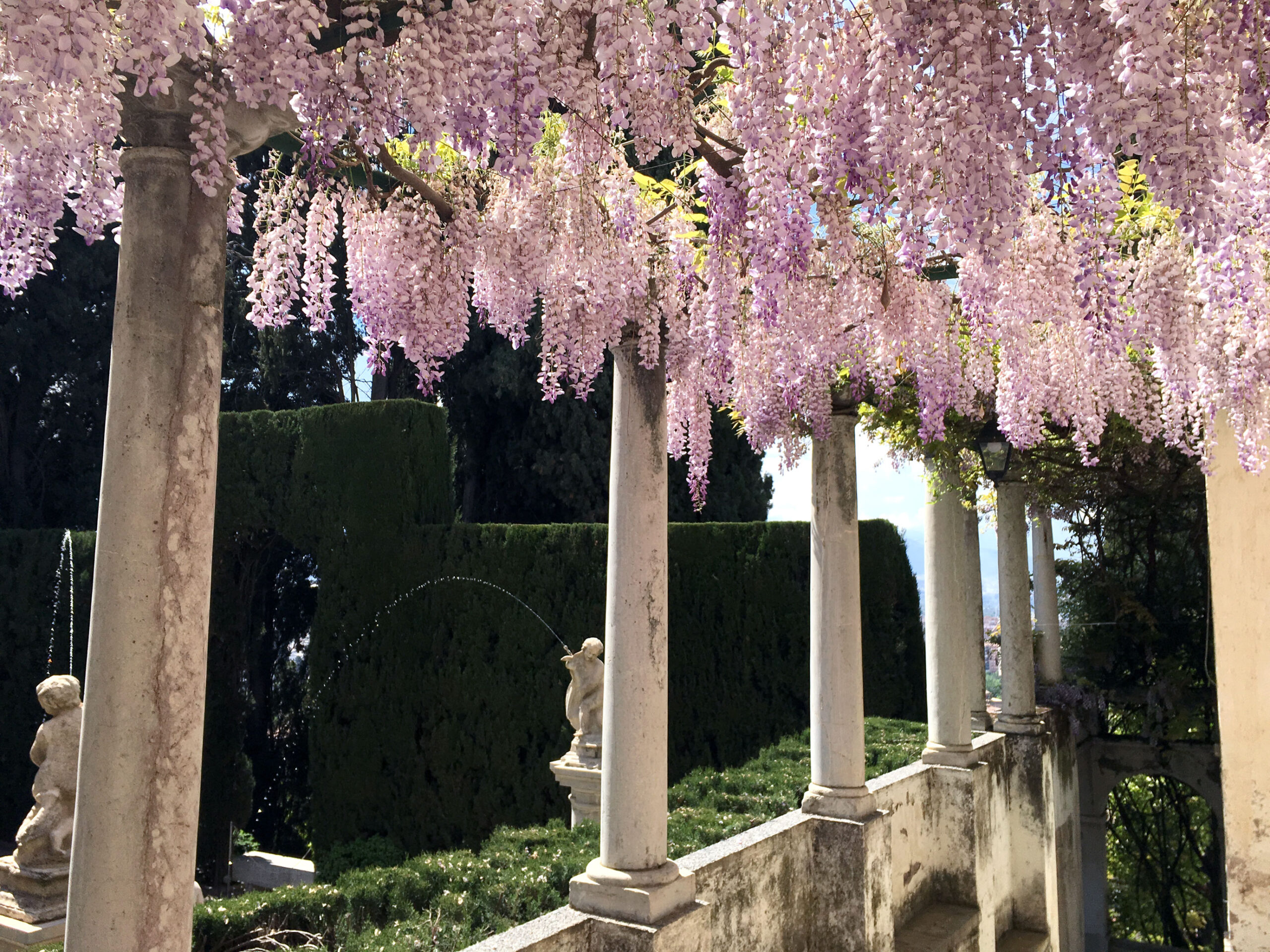 Aprovechando la tregua que nos ha dado la climatología, hemos podido recorrer los jardines que se encuentran en su mejor momento de floración, con el Rosal de banks y la glicina como grandes protagonistas.