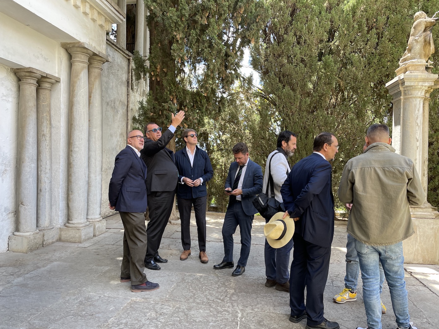 Después la comitiva ha paseado por el nivel intermedio del jardín, revisando las últimas intervenciones, tanto la pintura de paramentos, como la limpieza de la fuente del criptopórtico, donde se ha podido hablar con Carmen Tienza, la restauradora que está realizando la citada actuación. Después de pasar por el Museo Gómez-Moreno se han visitado los almacenes y el taller en el que se han revisado las dos esculturas recién restauradas, pertenecientes al Patio de Baco, recuperadas y remontadas en estos últimos meses. Estas piezas estaban guardadas en fragmentos, pues acabaron fracturadas por la caída de un ciprés durante una tormenta en la década de 1980′. Pronto se presentarán al público cómo merecen.