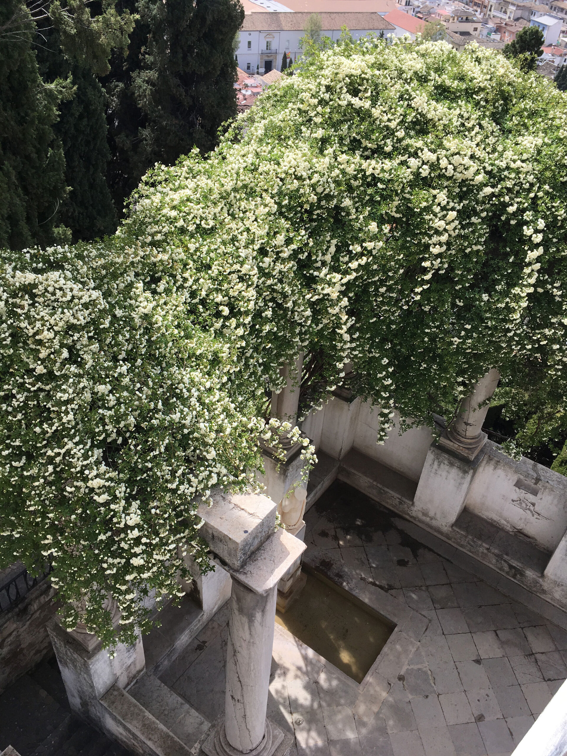 Además hemos podido disfrutar del jardín, revisando su discurso simbólico. Imposible no parar la mirada en el rosal de banks y las glicinias, en plena floración!
