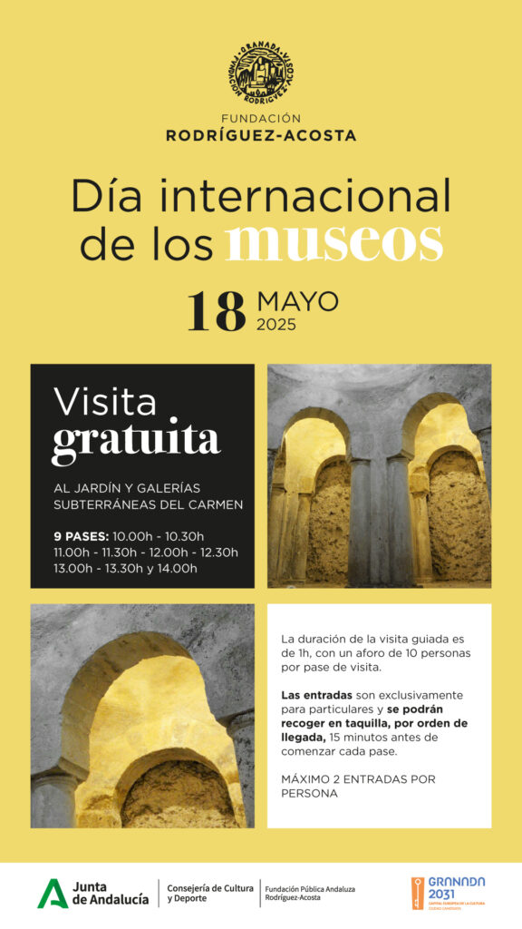 Este próximo domingo 18 de mayo celebraremos el Día Internacional de los Museos con visitas gratuitas. Durante todas la mañana, cada media hora, habrá pases de visita gratuita que recorrerán los jardines de la Fundación y las Galerías Subterráneas.