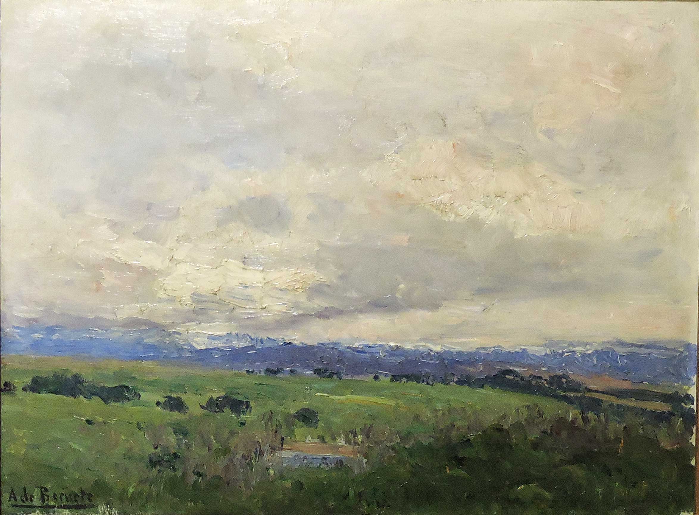 Paisaje de las cercanías de Madrid, con un estanque en primer término y la sierra de Guadarrama al fondo. Extraído de: A.A.V.V.: Instituto Gómez-Moreno (catálogo). Granada, 1992, p. 152
