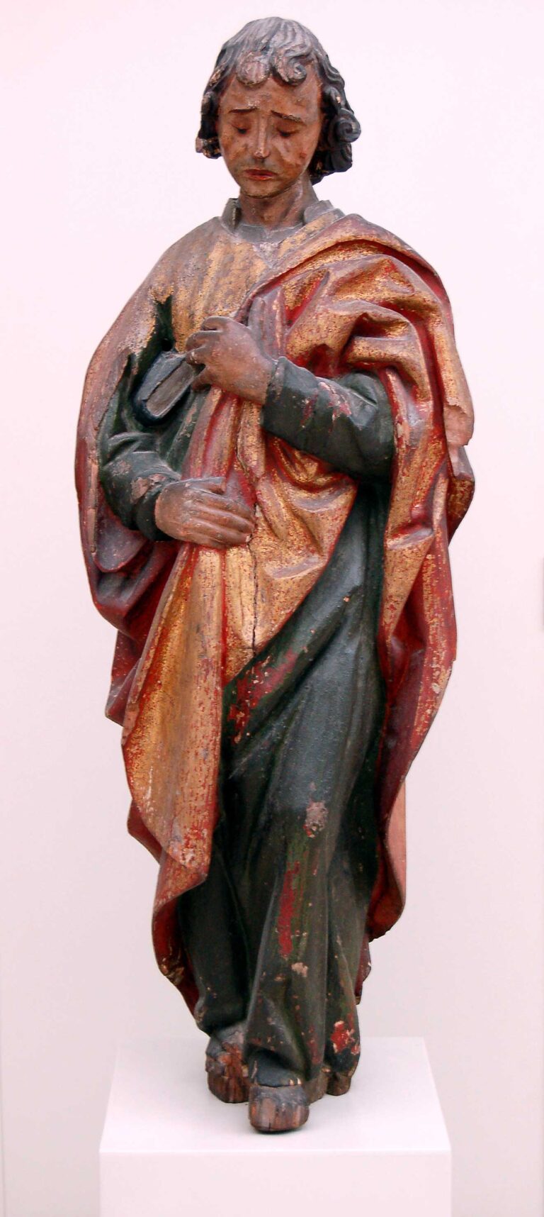 En esta escultura, la figura de San Juan está de pie, apoyado en unas peñas: viste túnica de piel de camello que deja desnudos el hombro y el muslo derechos. En la peana y en la pierna derecha se observan las pezuñas del corderito que lo acompañaría, ahora perdido, y que está señalando con la mano derecha. Procede de la colección Weisbérger. / Extraído de: A.A.V.V.: Instituto Gómez-Moreno (catálogo). Granada, 1992, p. 180.