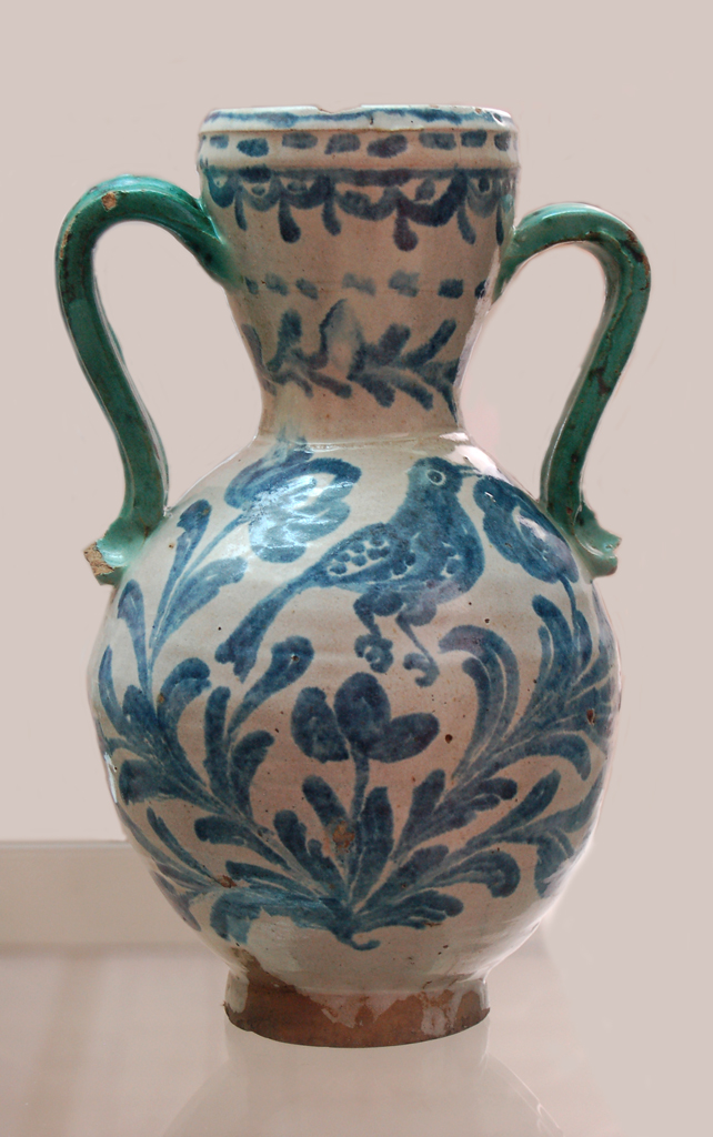 Esta obra es excepcional tanto por la técnica (cerámica vidriada) como por la solución del tema iconográfico que nos presenta. Santa Ana, de pie, viste traje a la moda en uso de Flandes en el s. XV; grandes pliegues ceñidos por un cinturón, toca y manto. La Virgen sentada sobre su brazo, con manto, hojeando un libro. En la parte de atrás de la escultura (que no está hecha para ser vista), aparece un monográma indescifrado, que posiblemente sea marca de taller. La composición repite un tipo muy común cuando se trata de «La Virgen con el Niño». Otra escultura igual a ésta, pero sin cabeza y sin vidriar, aparece fotografiada en el Catálogo Monumental de Sevilla, en colección particular de (Sevilla). Hay autores que piensan que el vidriado verde oscuro de esta pieza, puede ser porterior. Procedente de la colección de la Marquesa de Bermejillo. / Extraído de: A.A.V.V.: Instituto Gómez-Moreno (catálogo). Granada, 1992, p. 170.