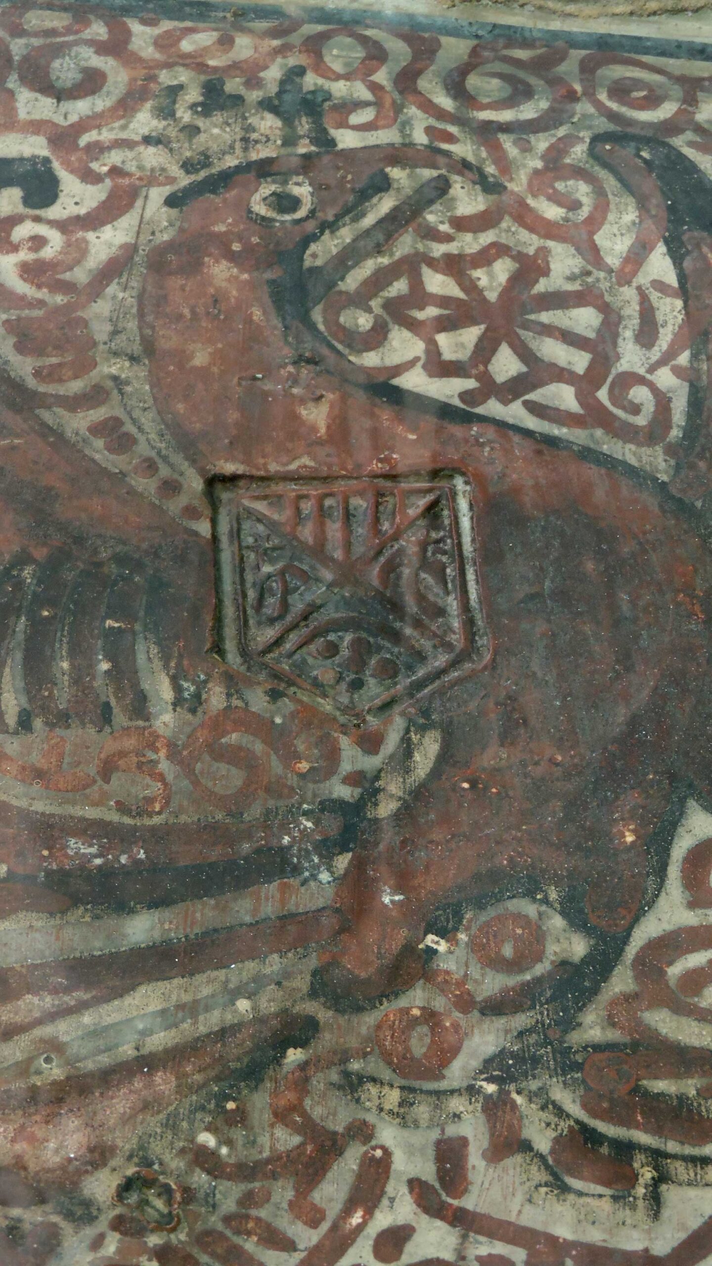 A diferencia de los azulejos, los «socarrat» no van recubiertos de vidriado. Son simples losetas de barro pintado y juagueteado, a modo de grandes ladrillos destinados a decorar las techumbres de madera, tanto las planas como las armaduras a dos aguas, usándose en sustitución de las tablazones (tablas de forro), dispuestas entre la viguería, entre jaldetas (techos planos) o pares (armaduras).En el caso que nos ocupa, la pintura del socarrat representa un águila con las alas abiertas que ocupa la zona central de la pieza y a su alrededor, como fondo, se dispone una decoración de tema vegetal, con palmas estilizadas, circulitos y estrellas, todo ello resuelto con trazo rápido. Cabe destacar, en el centro del águila el escudo antiguo de Paterna, estampillado con el barro fresco, identificativo del centro de producción de la pieza. Bibliografía:Martínez Caviró, Balbina: Cerámica Hispanomusulmana, andalusí y mudéjar. Madrid, El Viso, 1991, pp. 216-219.