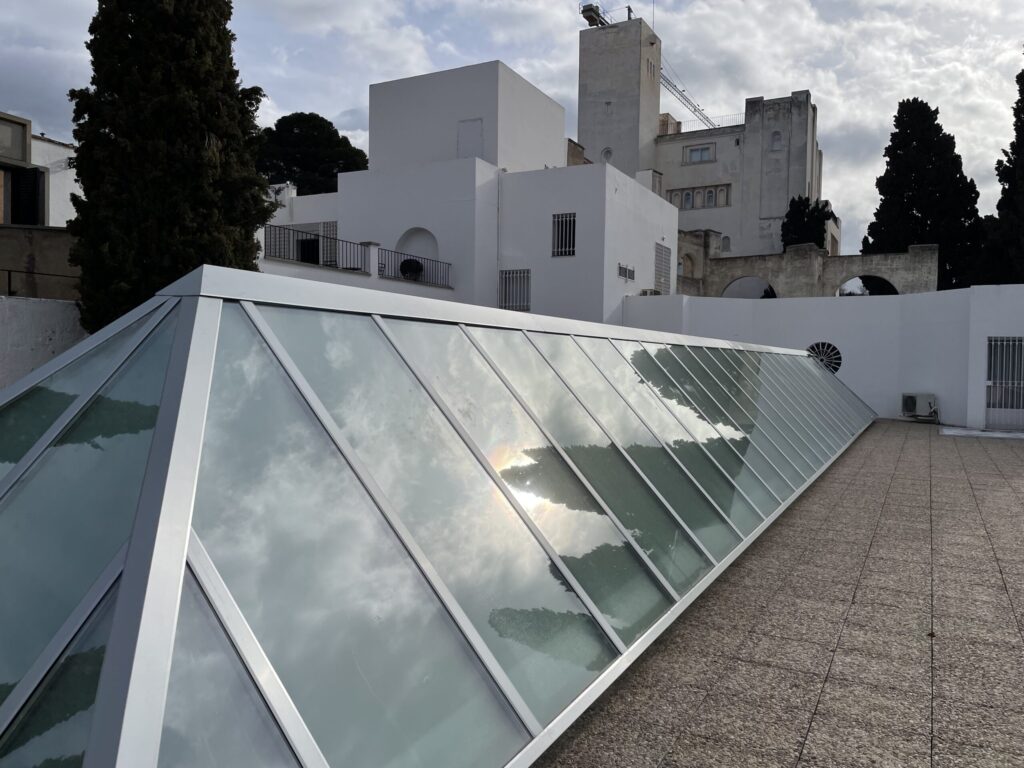 El elemento dominante, correspondiente a la sala principal de exposición, se situó al nivel del Patio de Venus, obteniendo de esta forma, tanto un recorrido de máximo interés por parte del público como preparación psicológica a través de los jardines y patios, como ocultar en gran medida sus dimensiones detrás de la pared coronada de arcos que constituye el fondo del patio del estanque. Una pequeña cámara de planta octogonal, dentro de la cual se repite su forma en una gran vitrina-lucernario, acoge parte de la colección de arqueología